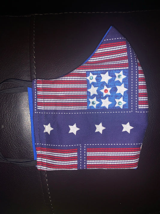 Stars and Stripes Bedazzled Cotton 2 Layer Facemask